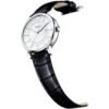 Mặt số trắng trang nhã kết hợp các cọc số và kim chỉ giờ sắc nét, cùng cửa sổ hiển thị ngày tiện lợi. Mặt kính khoáng phủ sapphire chống trầy xước nâng cao độ bền và độ trong suốt, bảo vệ tối ưu bộ máy bên trong.