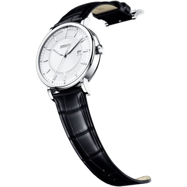 Chiếc đồng hồ SOKOLOV thuộc bộ sưu tập Pulse dành cho nam giới hiện đại, kết hợp hoàn hảo giữa vẻ đẹp cổ điển và công nghệ chế tác tinh xảo. Vỏ đồng hồ làm từ bạc 925 cao cấp với lớp phủ rodi chống oxy hóa, đường kính 44 mm và độ dày 10,77 mm tạo cảm giác đằm tay và sang trọng.