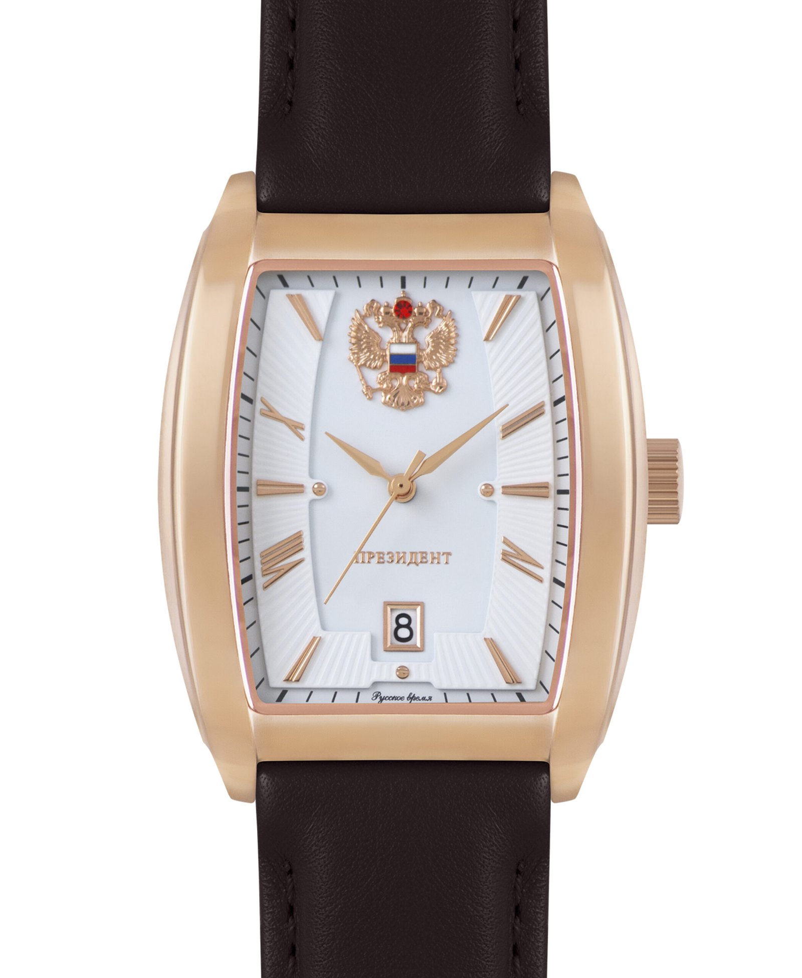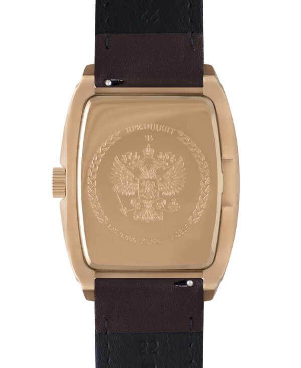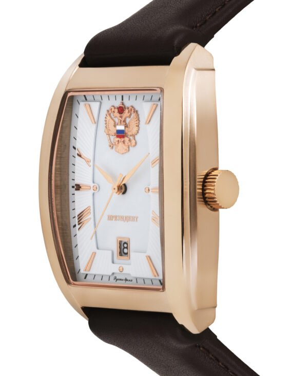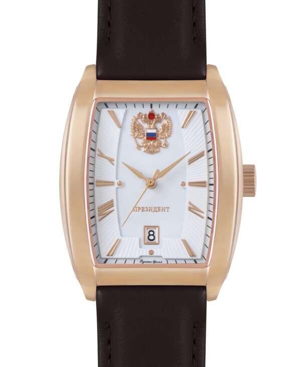 Đồng hồ PRESIDENT phiên bản màu vàng hồng mang phong cách cổ điển, lịch lãm với mặt số trắng trang nhã, huy hiệu quốc huy Nga uy nghi. Bộ máy quartz Nhật Bản chính xác, vỏ thép không gỉ mạ vàng hồng sang trọng, dây da cao cấp, chống nước 3 ATM – lựa chọn hoàn hảo cho quý ông yêu phong cách tinh tế.