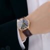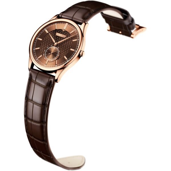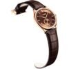 Dây đeo da thật màu nâu cá sấu mềm mại, chắc chắn, đi kèm khóa thép mạ vàng hồng sang trọng, giữ đồng hồ ôm sát cổ tay vừa vặn và tạo nên phong cách thời thượng cho người đeo.