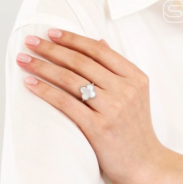 Nhẫn bạc 925 tinh tế, điểm nhấn vỏ trai tự nhiên sang trọng, thiết kế nữ tính và thanh lịch, trọng lượng nhẹ chỉ 3.12g.